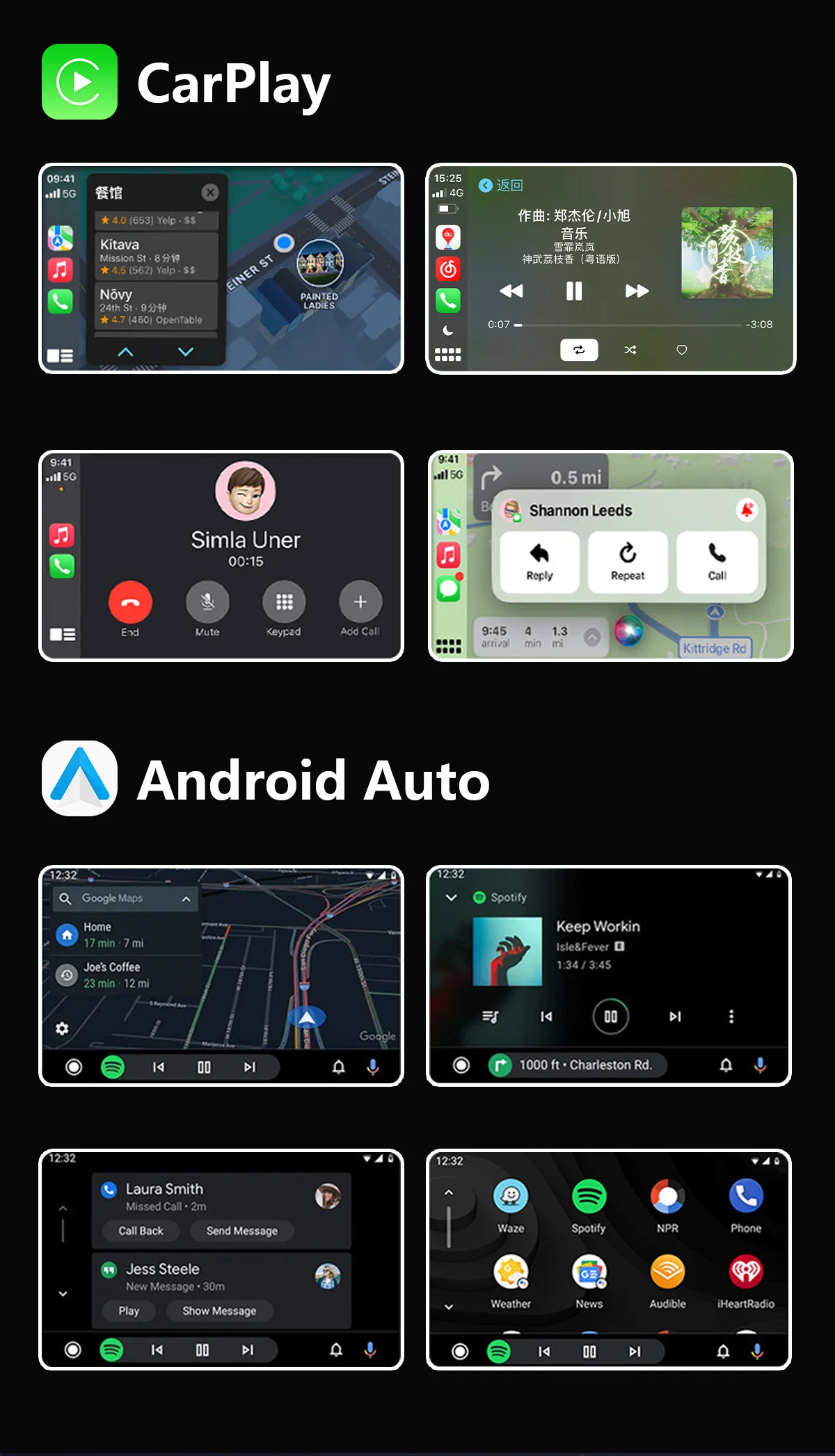 Access your music (Spotify, Apple Music, etc.), podcasts, audiobooks, and make/receive calls safely using your carβs controls or voice commands.