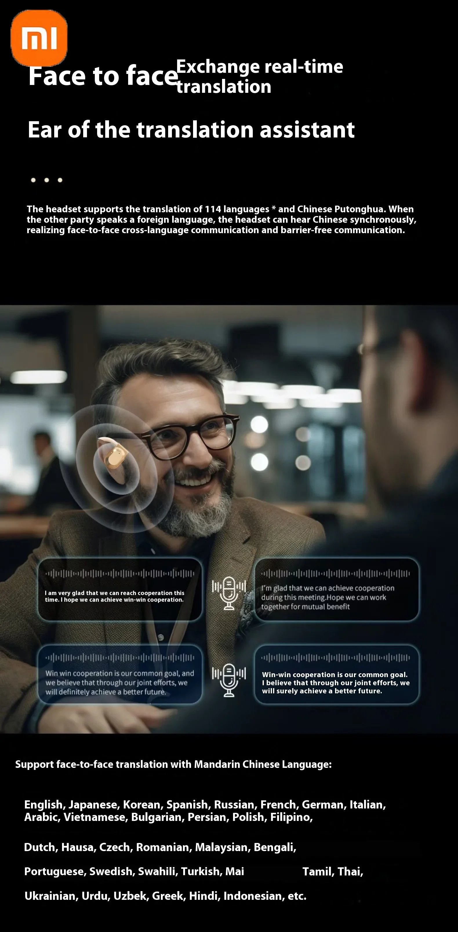 Xiaomi Translation Device Earphones Smart Earbuds Wireless Bluetooth Smart Translation Earbuds Real-time Translation Language